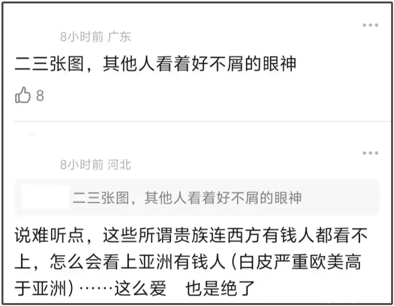 联想到卡米拉和李湘握手,对方都只给她握指尖,对比之下网友隔着屏幕看照片都有所体会,一方盲目崇洋媚外,一方不着痕迹隐形歧视,李湘本人难道毫无感觉嘛?