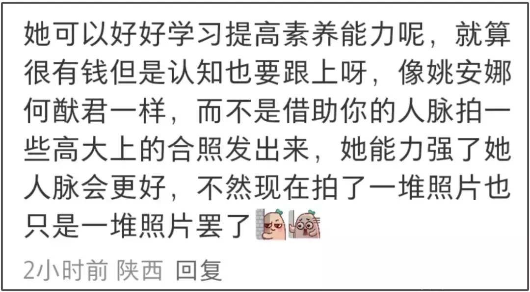 除了吐槽李湘崇洋媚外,也有网友开始质疑李湘对王诗龄的培养方式,越来越多人觉得,李湘带着女儿到处合照参加聚会,看似疼爱带着女儿接触各界名流见世面,但对王诗龄本人素养没有任何提升,仅仅是收获了一堆可以让她对外炫耀的照片罢了。