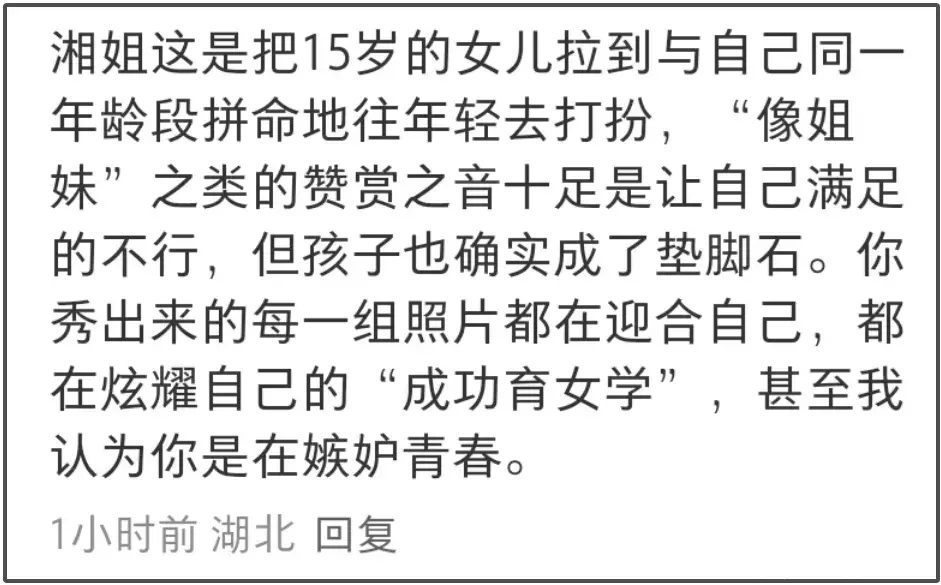 特别是网友察觉到,随着李湘女儿长大,她的个体标签愈发模糊,某种程度上是李湘控制欲的体现。